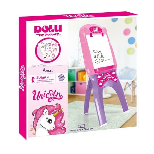 Tableau a pied Unicorn avec accessoires a dessin et coloriage de la marque DOLU. Age 3ans et plus. Contient une face métallique pour écriture avec marqueur! Dimensions 47x56x107cm. De plus, la marque Dolu est un fabriquant qui produit plusieurs Jouets éducatifs. Tableau de dessin Jumbo avec support-papiers à dessin permettant aux enfants de l’utiliser pour toutes les formes d’art de leur choix. Livré avec une gomme et un marqueur, pliable pour un stockage et une portabilité faciles. Cet ensemble de jeu robuste artistique, encourage les enfants à développer leur imagination et la créativité.